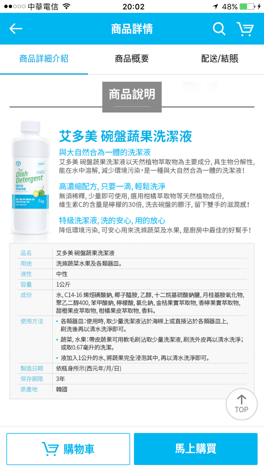 最後稍微介紹一下艾多美碗盤蔬果洗潔液。