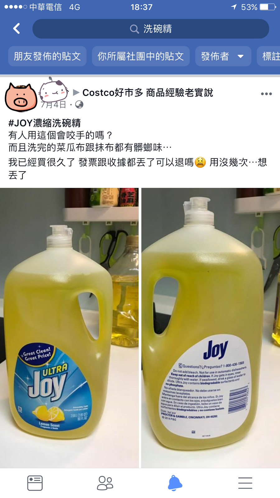 後來偶而在FB相關社團,才知道兇手是洗碗精,而且怪味是蟑螂味!😣😣眾網友回應也普遍反映有怪味,早知道我就拿去退,竟然還默默用完這一大桶。
